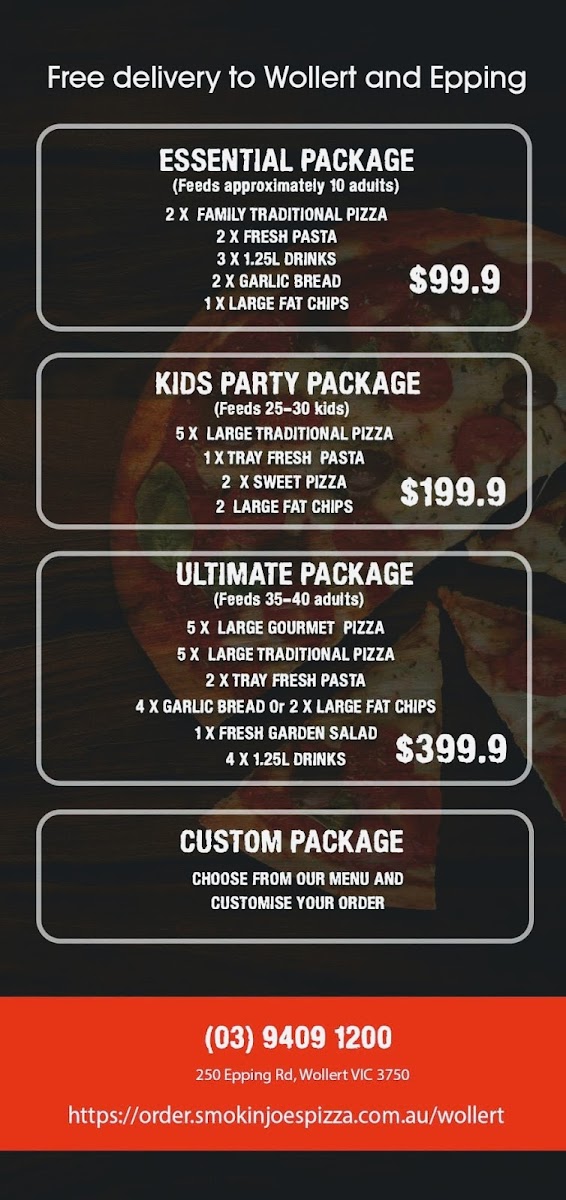 Welcome to Smokin Joe's Pizza & Grill Wollert, a culinary gem nestled at 250 Epping Road, Wollert, VIC. This family-run establishment has quickly garnered rave reviews for its delectable range of pizzas, appealing to both meat lovers and vegetarians alike. Customers have highlighted the customization options available, allowing you to tailor your pizza to suit your tastes perfectly.